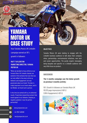 "When we decided to focus efforts on our Yamaha Motor UK LinkedIn channel, we wanted to find someone that was that was not only skilled in the area to drive up followers and engagement, but was passionate about our brand. The later is vitally important to our brand values, and in lan Webb